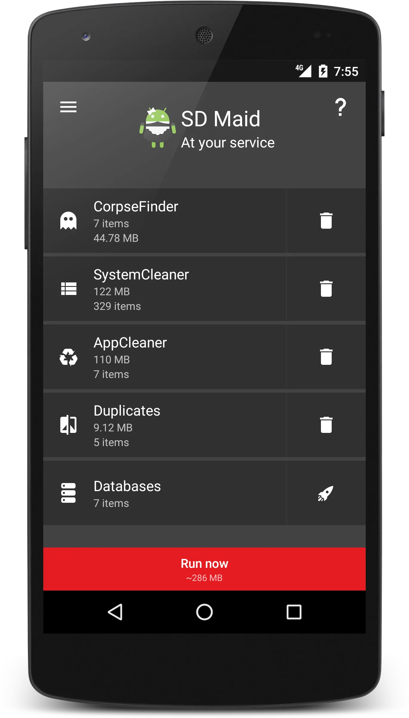 SD Maid will help you keep your device clean and tidy! It offers a collection of tools to manage apps and files. Nobody is perfect and neither is Android. Apps you have already removed leave something behind. Logs, crash reports and other files you don't really want are constantly being created....