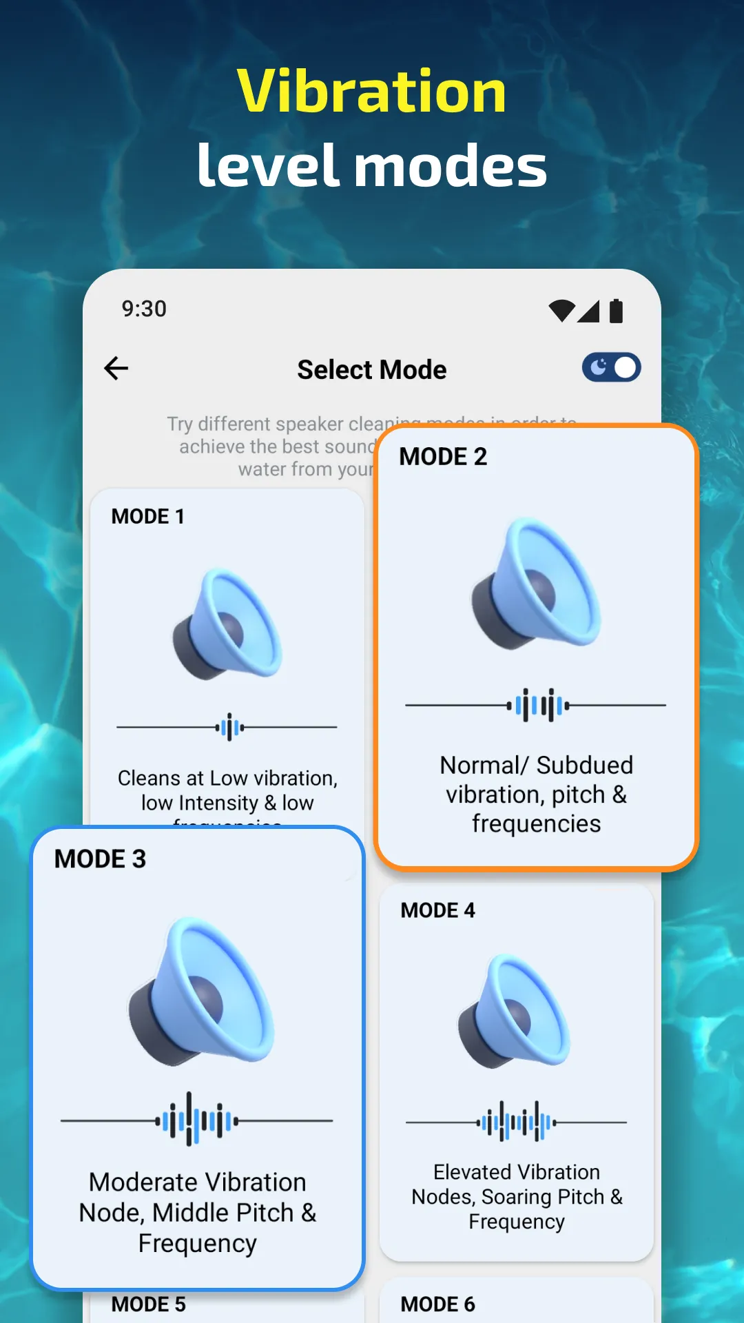 must try the frequency mode it cleaned my speaker I was really scared because the speaker was not working some what sound was coming after using the frequency mode it really helped me