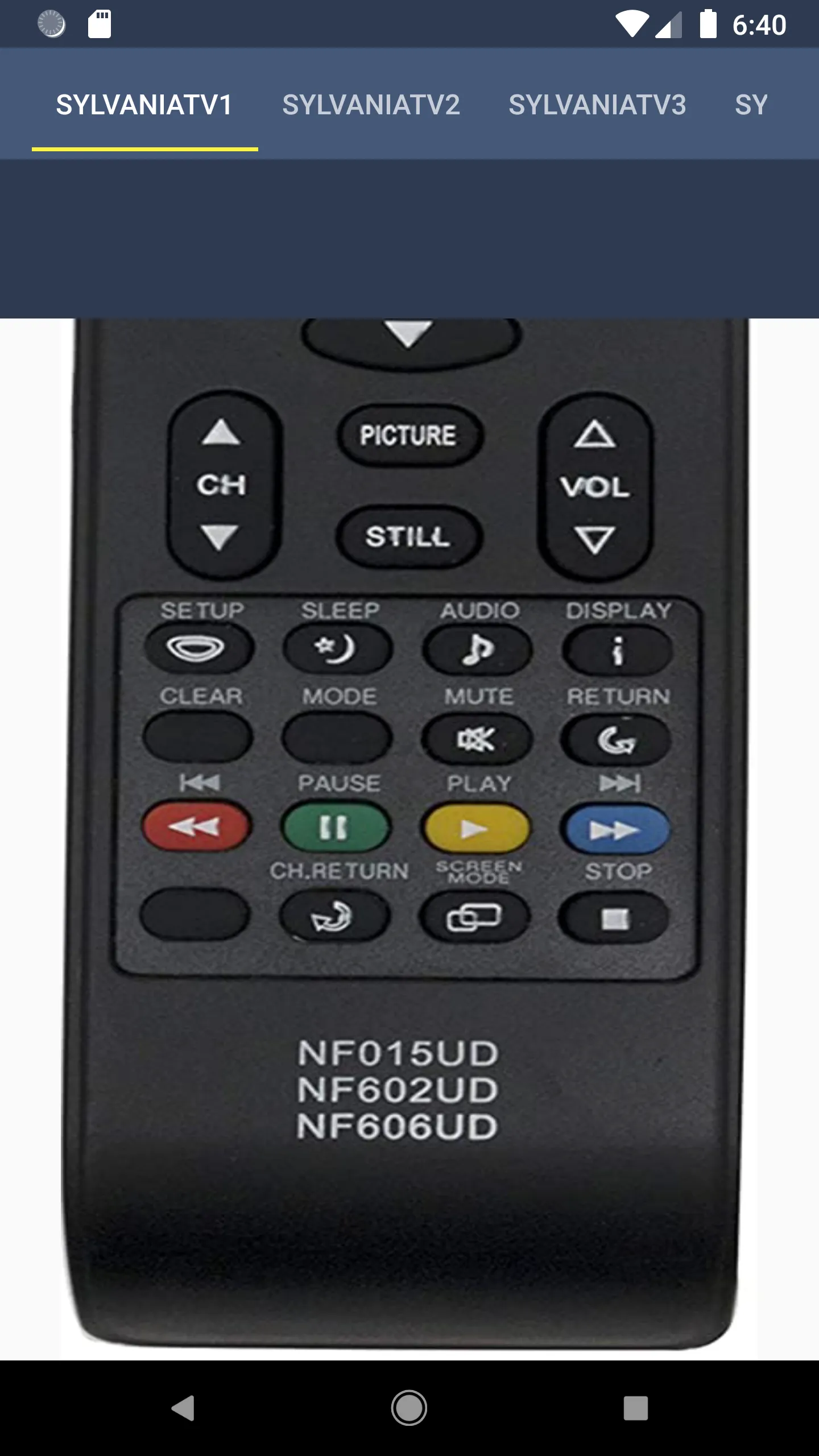 Sylvania TV Remote Control
