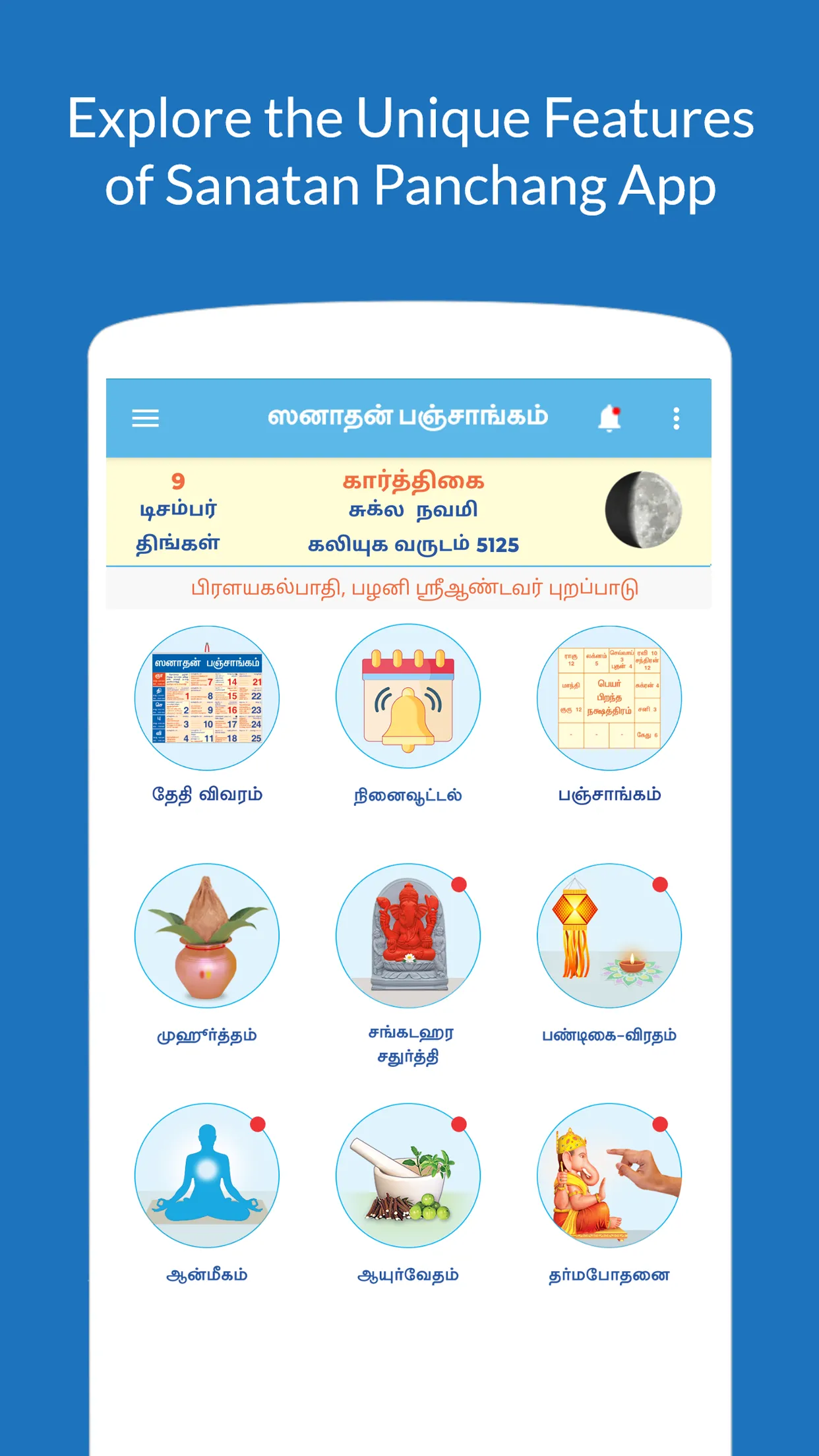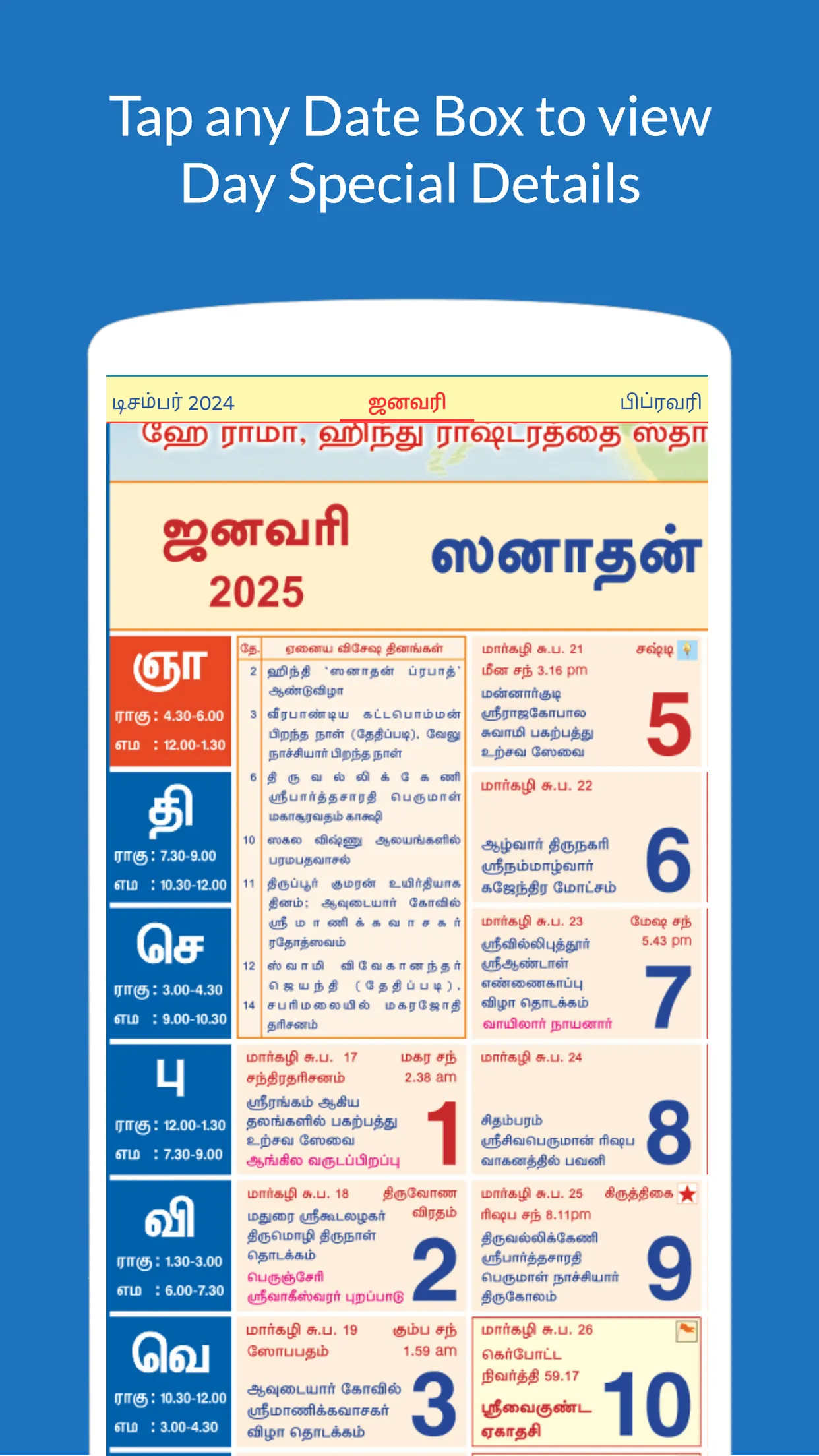 Tamil Calendar 2025 (Your pocket friendly Sanatan Panchangam) 2025 Calendar App in Tamil for Hindus across the globe. It gives us immense pleasure and pride to announce that we are now entering the 10th year. It is due to loyal users like you that today we have crossed the milestone of more than 1 Lakh app downloads. √ Updated with new features (and more to come) !...