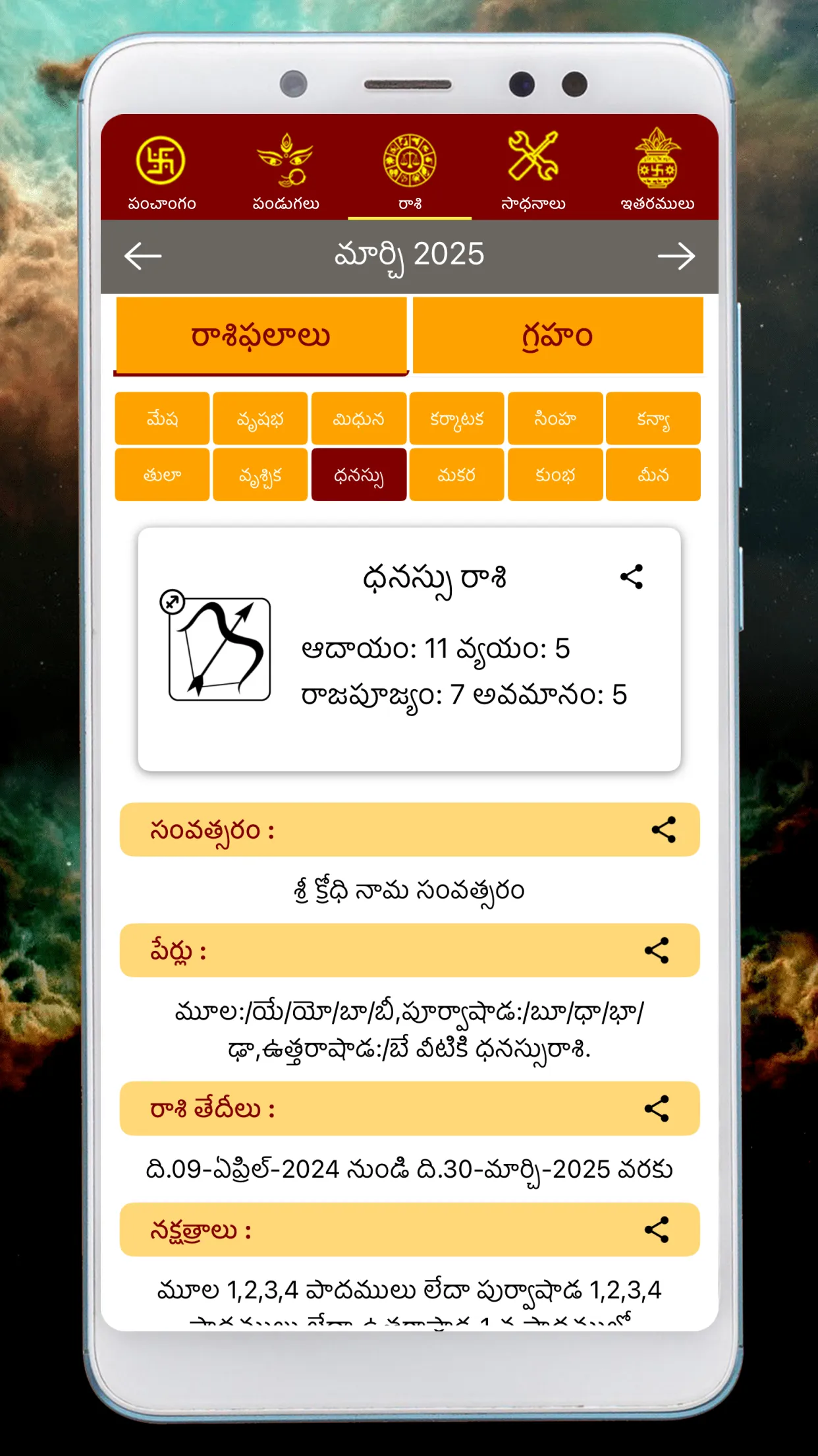 Telugu Calendar Panchangam App for 2025 is now 2026 also, Your all-in-one guide to Telugu traditions and Panchangam timings! Experience the ultimate calendar app designed specifically for Telugu-speaking people worldwide. Our app provides a seamless and user-friendly interface, ensuring that you stay organised and up-to-date with ease. Explore the entire Telugu year at a glance, including Maasam (month), Rutuvu (season), Kalam (auspicious timings), Vaaram (day of the week), Tidhi (lunar day), Nakshatram (lunar mansion), Sooryodayam (sunrise), and Sooryaasthamam (sunset), Jathakam. Stay in sync with the celestial rhythms of the Telugu calendar. ...
