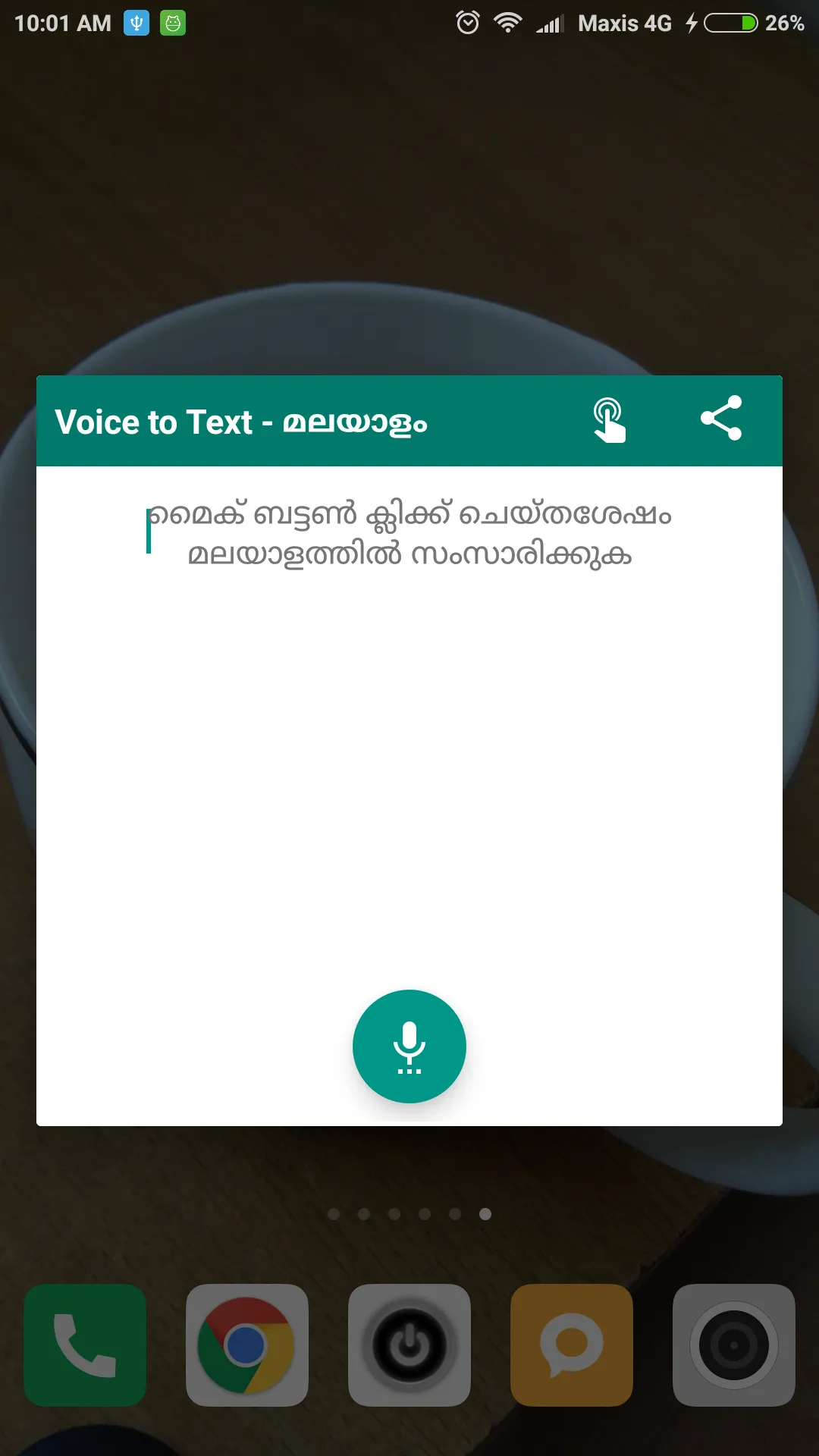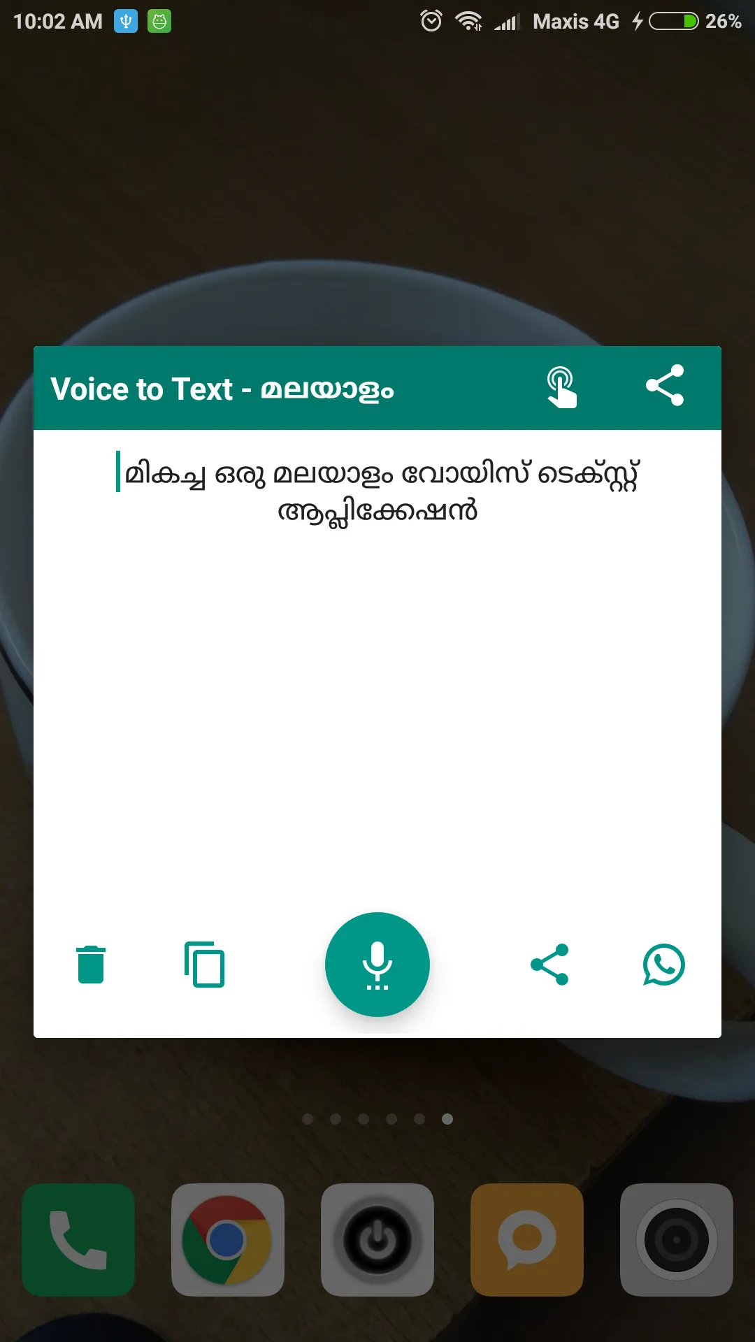 Quick and easy way to convert Malayalam voice/speach/speaking to text. Forget about installing Malayalam keyboard and typing. This app will reduce your effort to type it. Just speak , the app will convert it to Malayalam text quickly. Key highlights:- - Option for single touch WhatsApp share - Copy or share via any other apps....