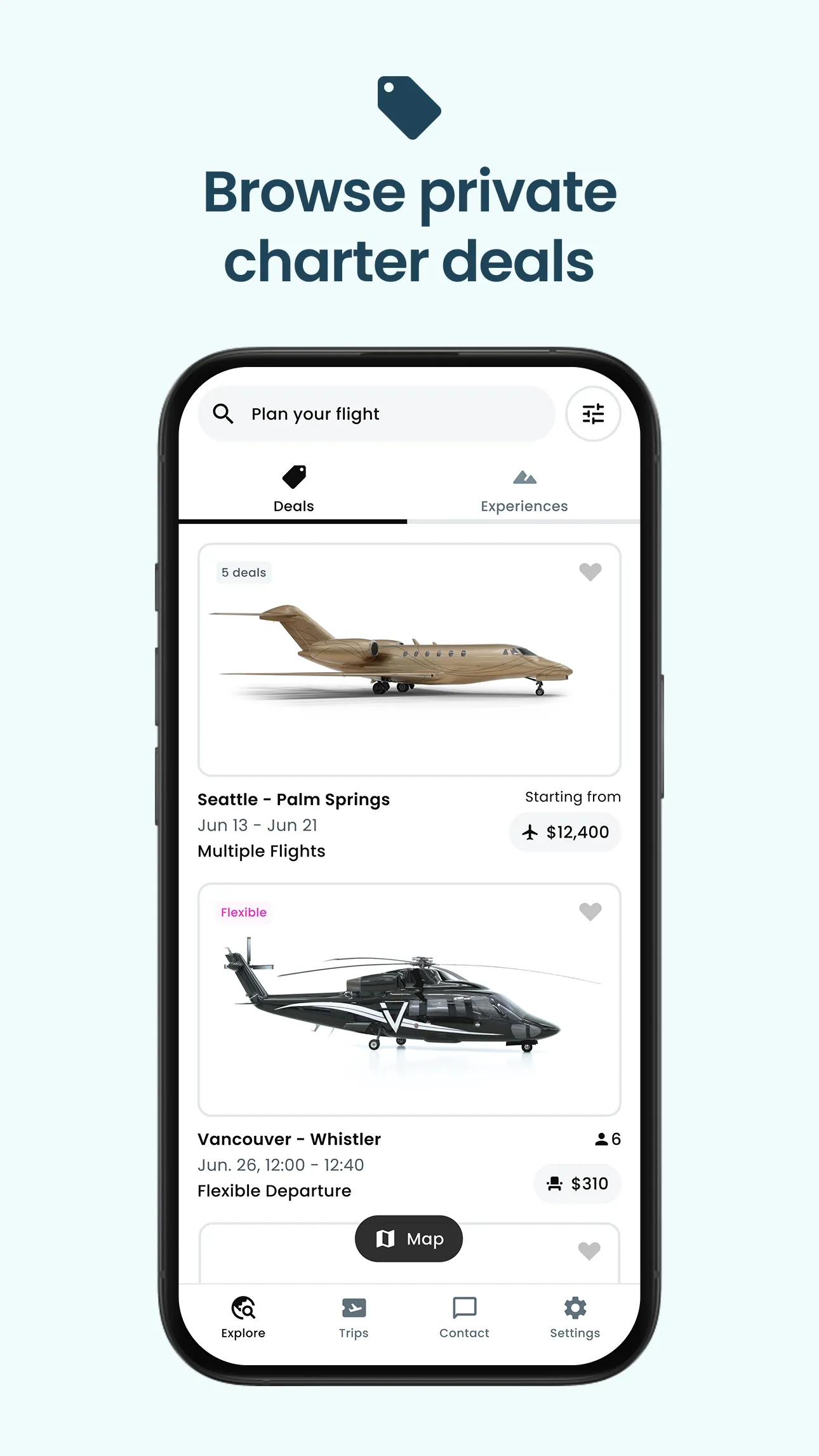 With Airble, you can: - Instantly charter seaplanes, turboprops, helicopters, and private jets across North America - Share your private flight and earn rebates when others book the spare seats - Find deals on private empty leg flights and shared flights - Book breathtaking air tours, aviation experiences and vacation packages - Choose the most convenient airports for your travel needs...