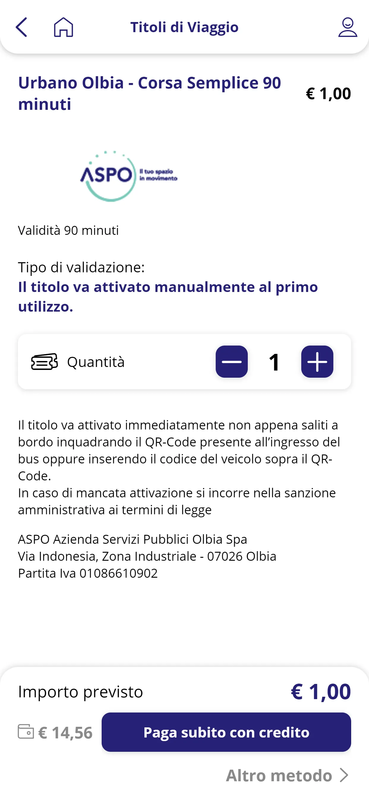 With ASPO you travel solutions and securities purchases to travel and stay, a company specializing in local public transport and in the Stop Management. In the heart of Gallura, Olbia. All in the palm of your hand. Welcome to a new world of services. Buy tickets directly from your smartphone. You can pay by credit card or by loading the 'Credit Transport' by credit card, masterpass, Postepay, Satispay or PayPal