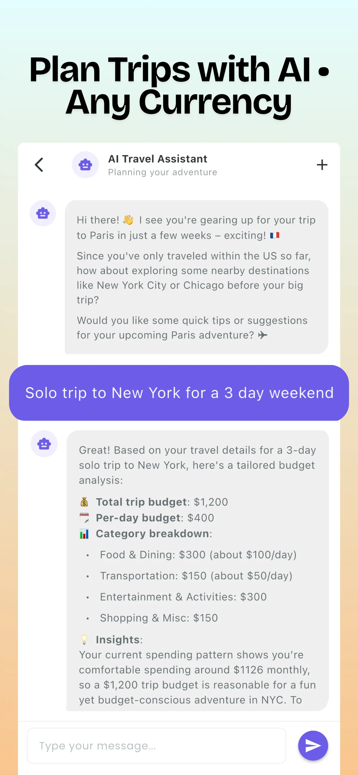 Transform how you manage money with ExpenseEasy 2.0—your AI-powered financial companion that tracks expenses, plans trips, and keeps you on budget effortlessly. ※ YOUR PERSONAL AI ASSISTANTS Three specialized AI agents work together to simplify your financial life: ...