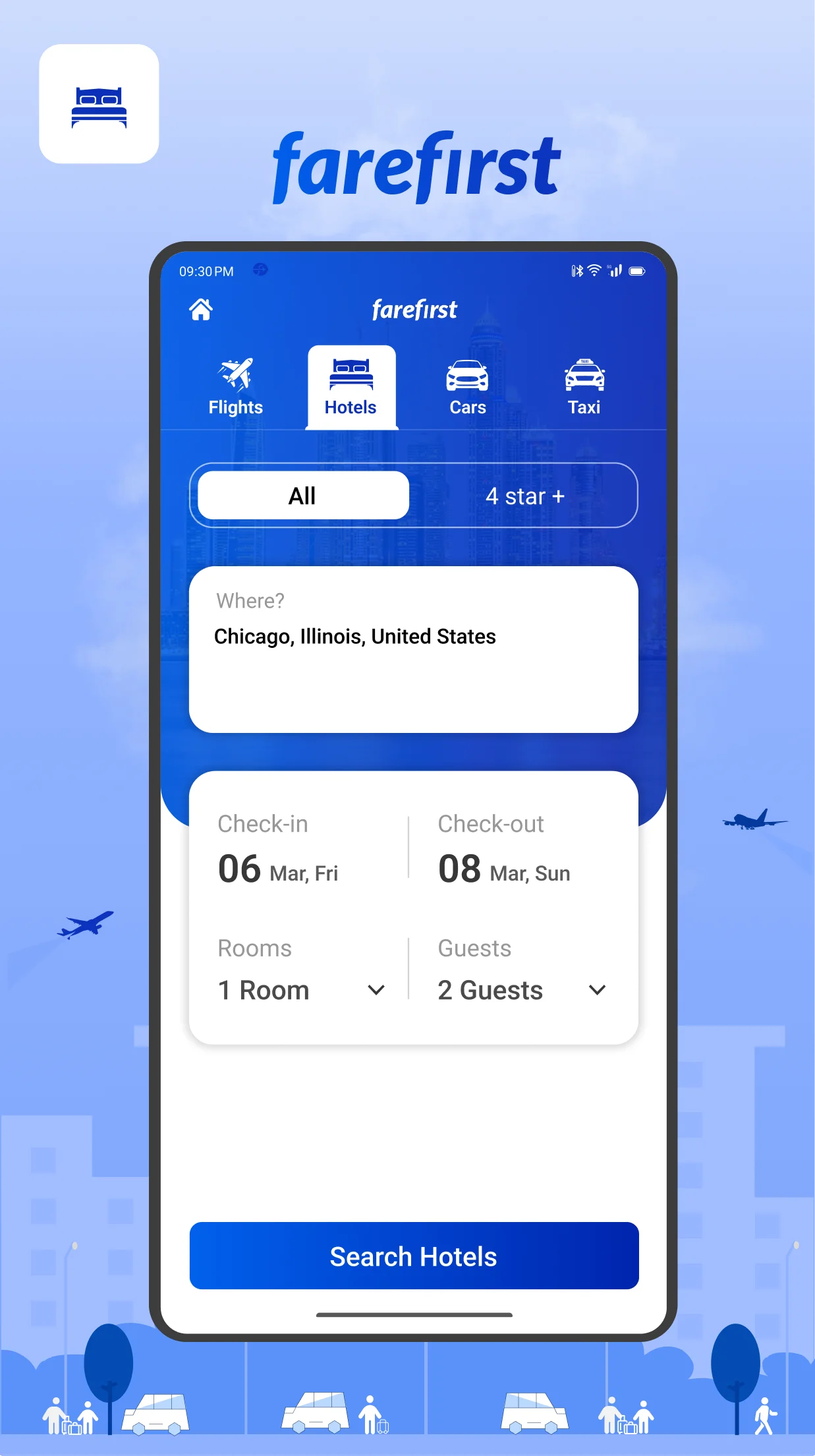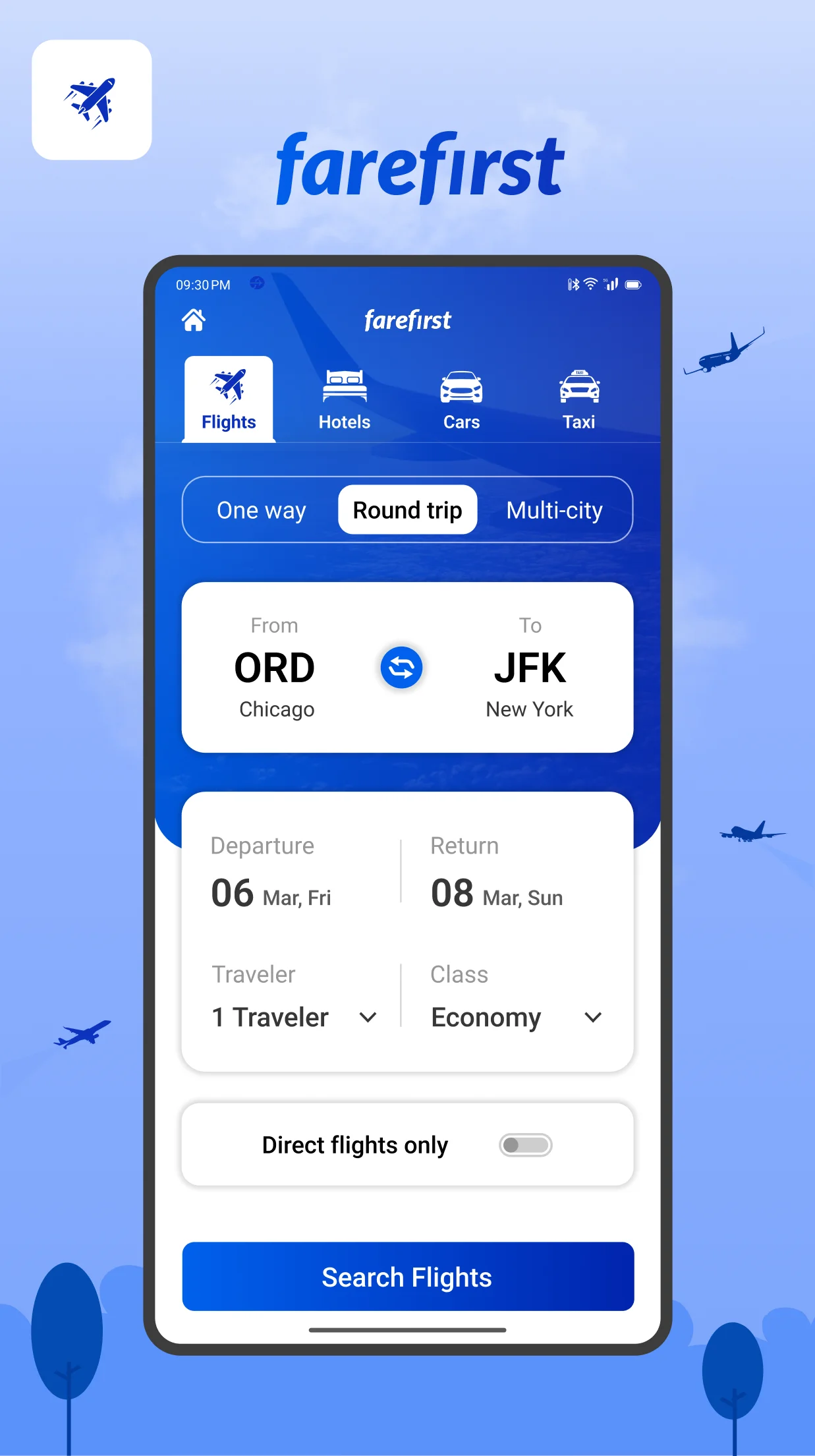 FareFirst app helps you to find the cheapest flights and best hotel booking deals. With our real-time flight tracker feature, you’ll always have the latest updates about your itinerary. Search 500+ travel websites instantly for the best price. We search and compare thousands of trusted travel sites with one click and help you to find the best flight tickets and hotel rooms. Our verified 1000s of online travel agencies and airlines are at your disposal to cover your travel needs throughout the world. We cover both domestic and international markets to find the hottest deals, cheap flights, even last minute flight booking deals and discounts. Our specialized and optimized search engine ensures that you always get the best deals and helps to make your travel more comfortable, stress-free, and pocket-friendly. Apart from travel agencies we also have tie-ups with many low-cost budget airlines to find airfare from airlines’ websites directly. We also provide you with the best offers, deals, and discounts on hotel booking. Here you can find the best price hotel, motel, BnBs, vacation rentals, guesthouses, hostels, luxury resorts and more. Some of the popular agencies we compare are Cheaptickets, Expedia, FlightNetwork, Tripsta, Smartfares, Travelgenio, Momondo, Kayak, Kiwi, Opodo, Orbitz, Kupibilet, ihg, and many more. ...