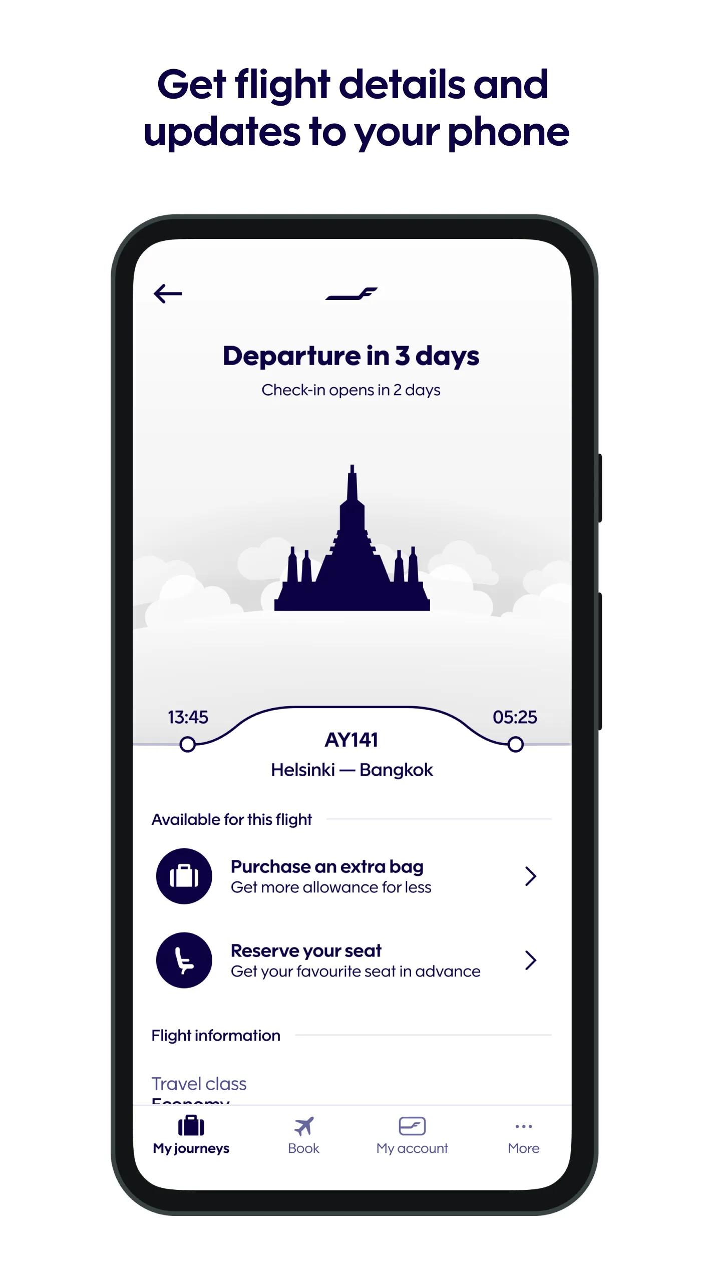 The Finnair app is a travel companion designed to give you peace of mind throughout your journeys, from preparing for the flight to landing at the destination. CHECK-IN AND BOARDING PASS You can check-in to your flights to most destinations and keep your boarding pass in your app. FLIGHT INFORMATION...