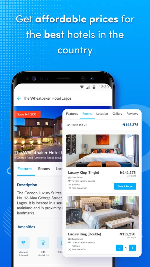 Find and book classy and affordable hotels in Nigeria. Choose from over 10, 000 nicely picked hotels in 1000+ Nigerian cities. Hotels.ng is Nigeria's leading booking agency. We offer lots of exciting offers including fantastic discounts! For a unique experience on your next trip, you can choose from our sterling list of hotels, guesthouses, motels, resorts and hostels in Nigeria. To make your journey with us a smooth one, we have developed the hotels.ng app. With the new hotels.ng app, you can book accommodation in very simple steps. You also get to adjust your choice of hotel, cancel a reservation and extend your stay with no stress! ...