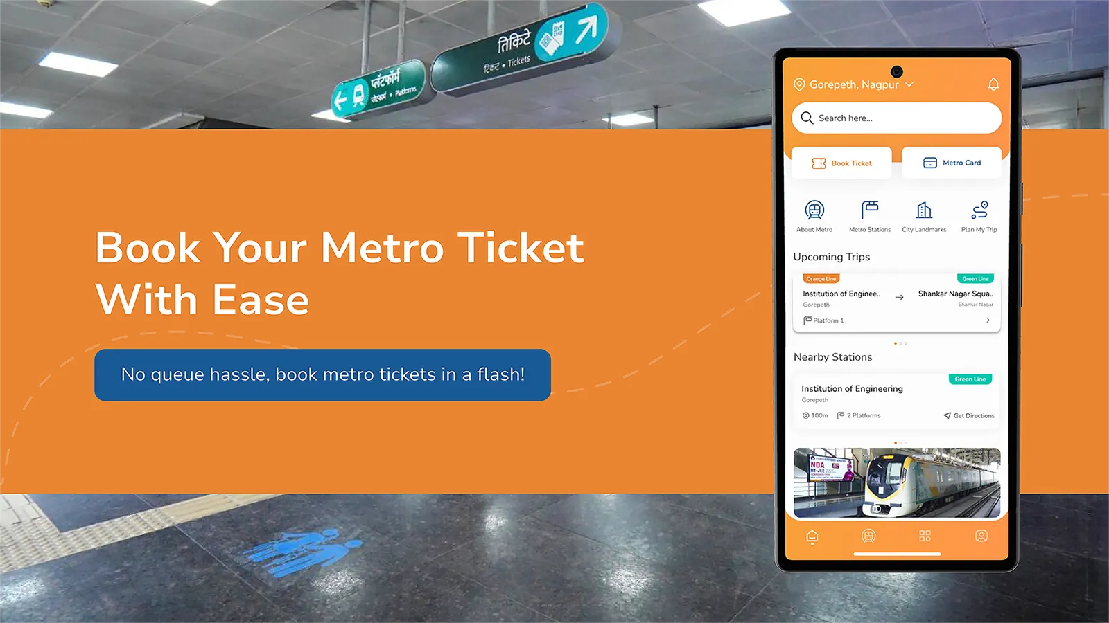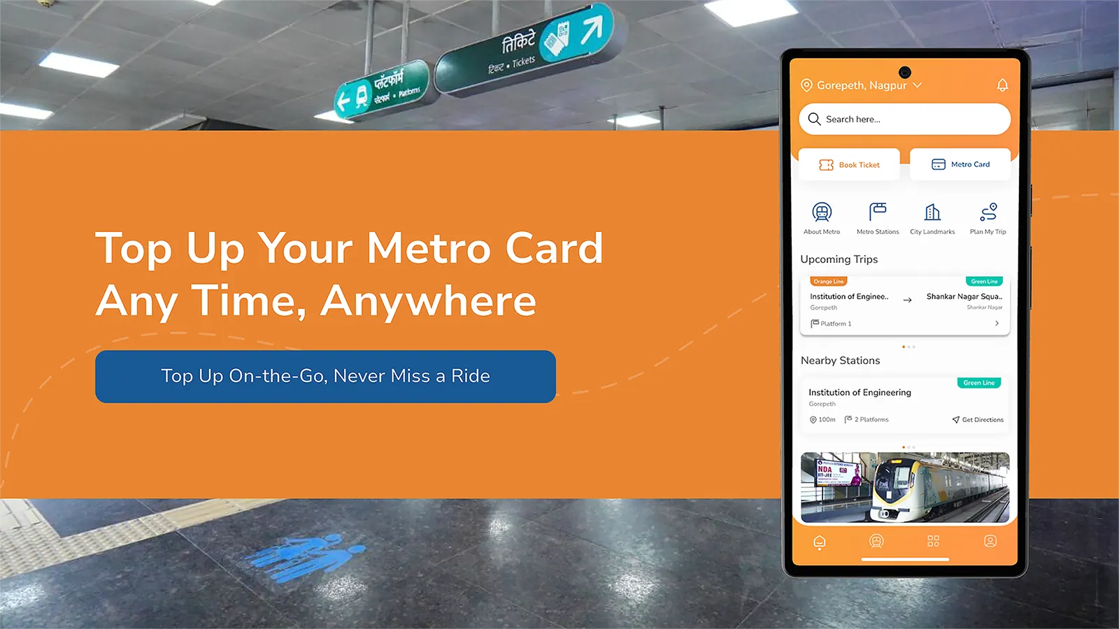 Make your travel with Nagpur Metro even more easier through the convenience of using the official ticketing mobile application of the Nagpur Metro. It allows you to book tickets, view information about stations, view routes between stations as well as route from and to the stations, first and last train timings, as well as nearest tourist destinations. It also allows you to contact us and leave your feedback about the services, facilities, or the journey. Have a question or suggestion? Mail us ...