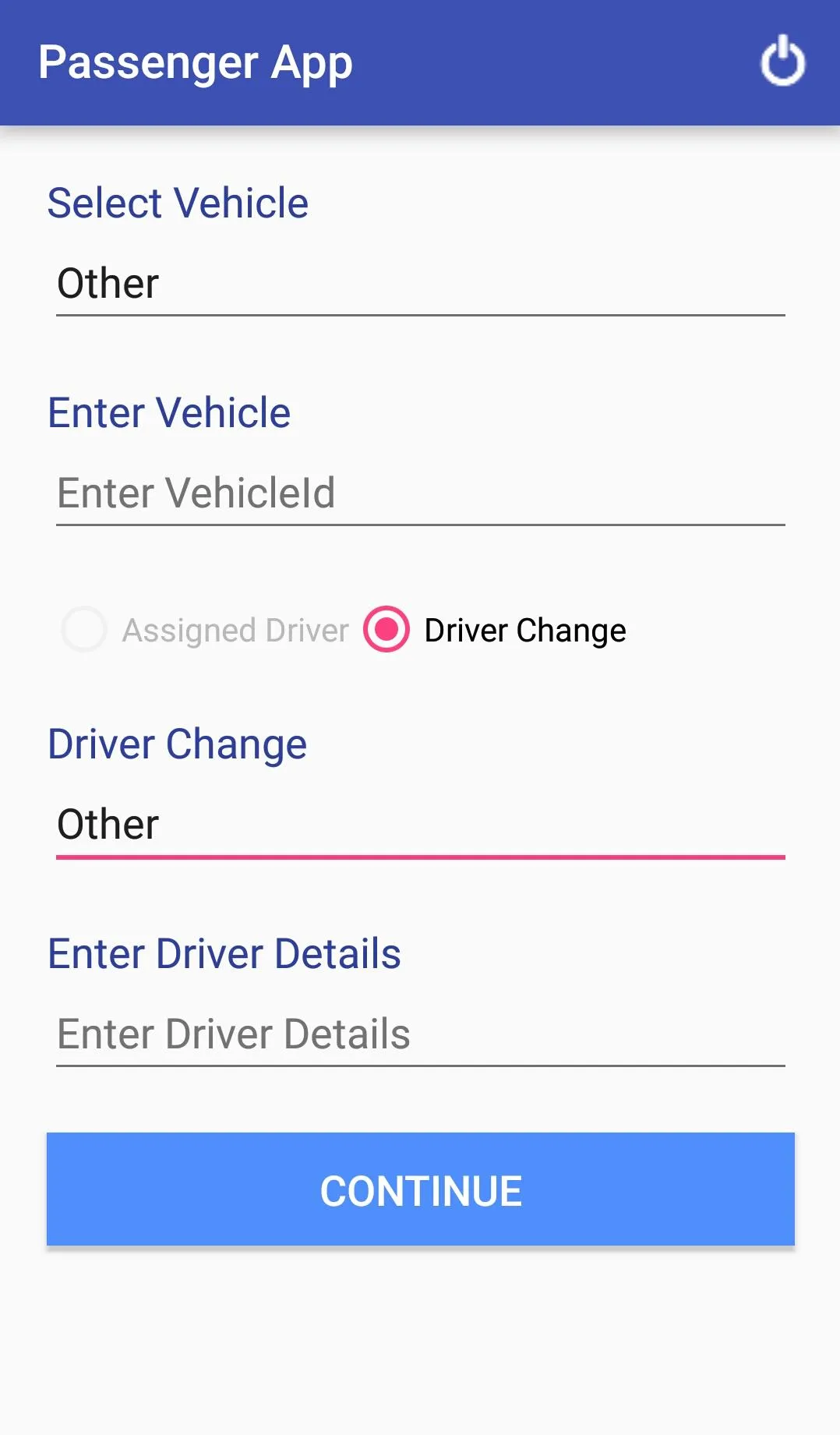 Passenger App Passenger can give TagIn and TagOut details related to vehicle. TagIn - It is for Trip start TagOut - It is for Trip End Vehicle and Driver Details for each trip are saved.