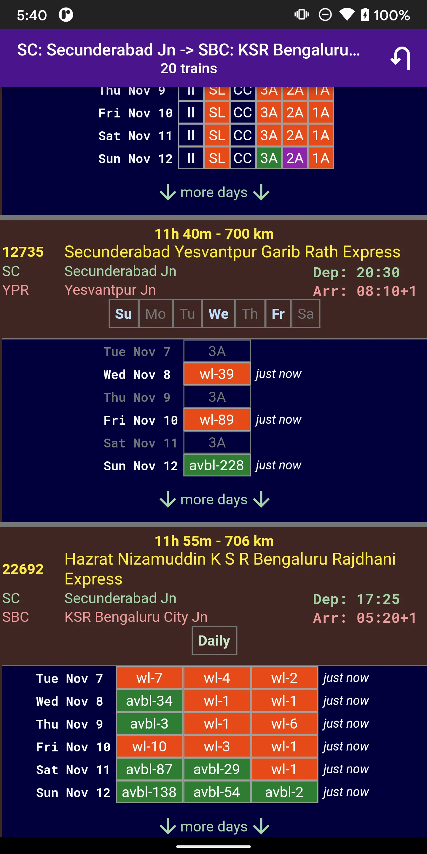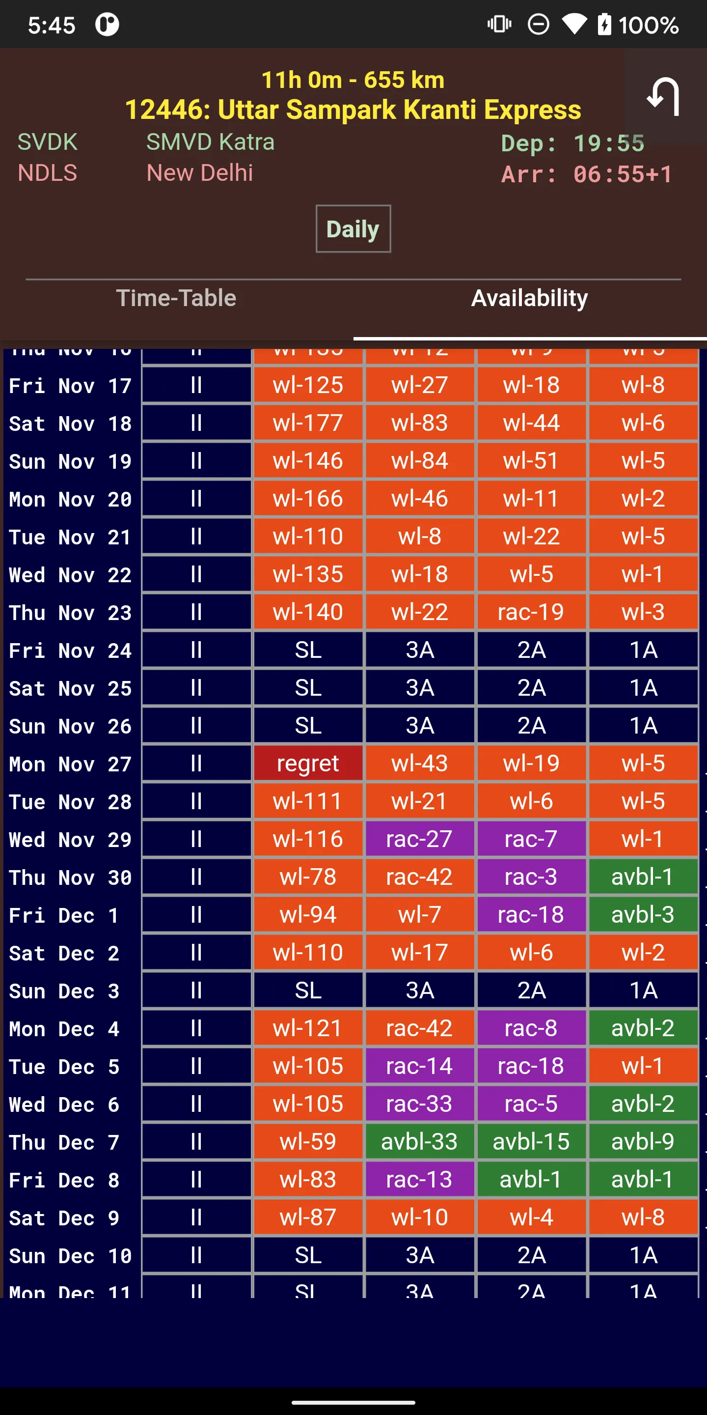 Welcome to the World's Largest RailFan Community. RailCal provides powerful offline Train Search functionality for Indian Railways, along with offline train timetables originally published on Indian Railways' official websites (listed below). In addition to these features, RailCal also grants access to the popular India Rail Info Travel Forum. RailCal shows Indian Railways TimeTables & Seat/Berth Availability Calendar fetched from one or more of the following publicly available Indian Railways official Govt websites: 1. https://www.indianrail.gov.in - Official Train Enquiry website - This website has sporadic outages, based on server load. Often down around midnight IST and late night India time....