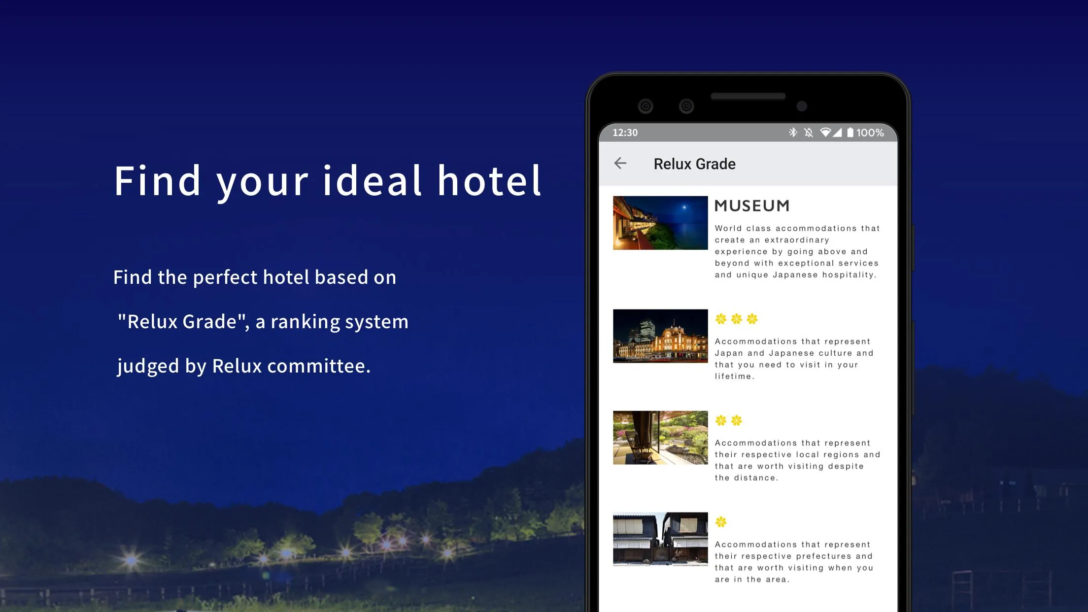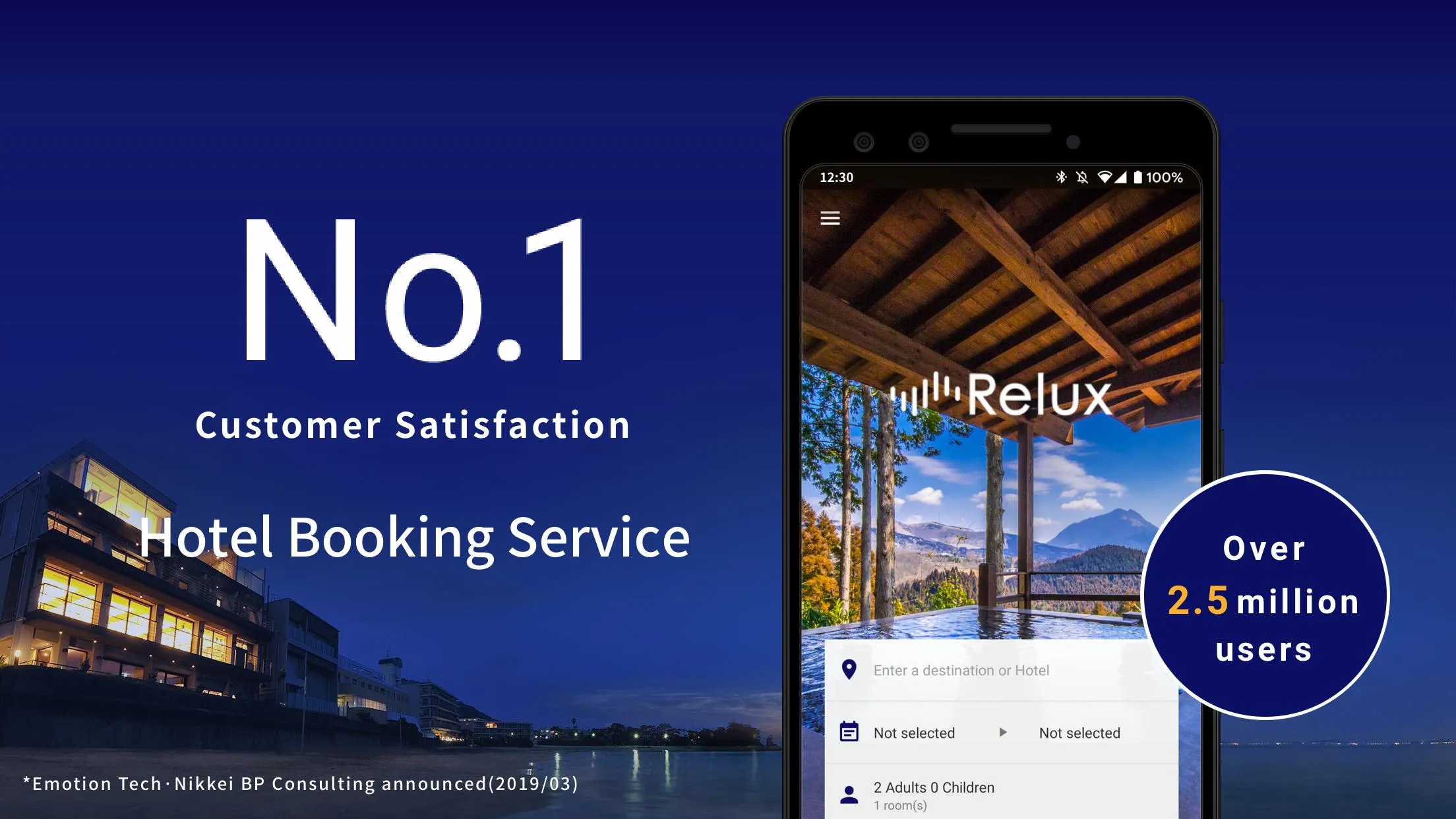 Join over 2,000,000 users and come see what Relux, *a hotel and Ryokan booking service in Japan, has to offer - all in our official Android application! Number 1 in customer satisfaction*, our online travel service connects our users to first-class hotels, hot spring inns, and business hotels all across Japan. From our network of over 2,500 carefully vetted facilities you are sure to find the perfect lodging to meet your travel needs. Everything from searching to reserving can easily be accomplished within our App. Relux is here to help you find and book your next unforgettable summer vacation! Relux Features: ◼ High Satisfaction Accommodations...