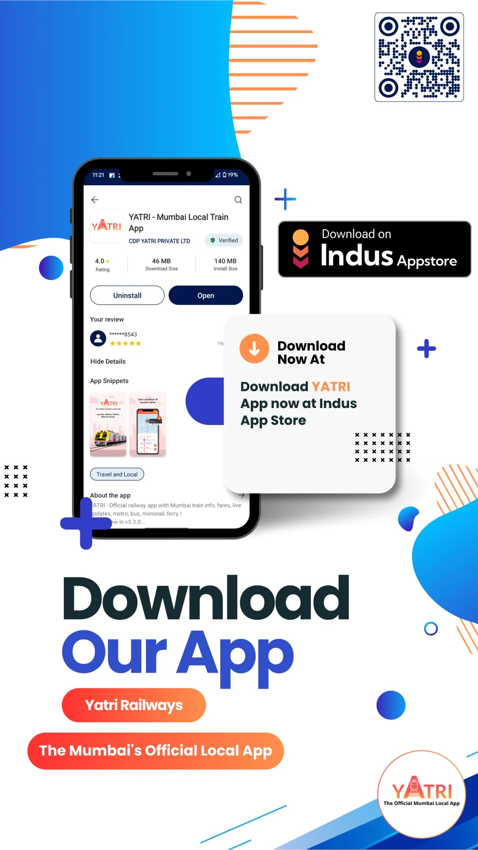 YATRI - Official railway app with Mumbai train info, fares, live updates, metro, bus, monorail, ferry ! Whats new in v3.7.0: 🏆 Yatri Referral Campaign: Refer your friends and families to Yatri and climb to top in Referral Leader-board and win exiting rewards# 🎫 Book Mumbai Metro tickets, powered by ONDC 🧙 UI and textual fixes.