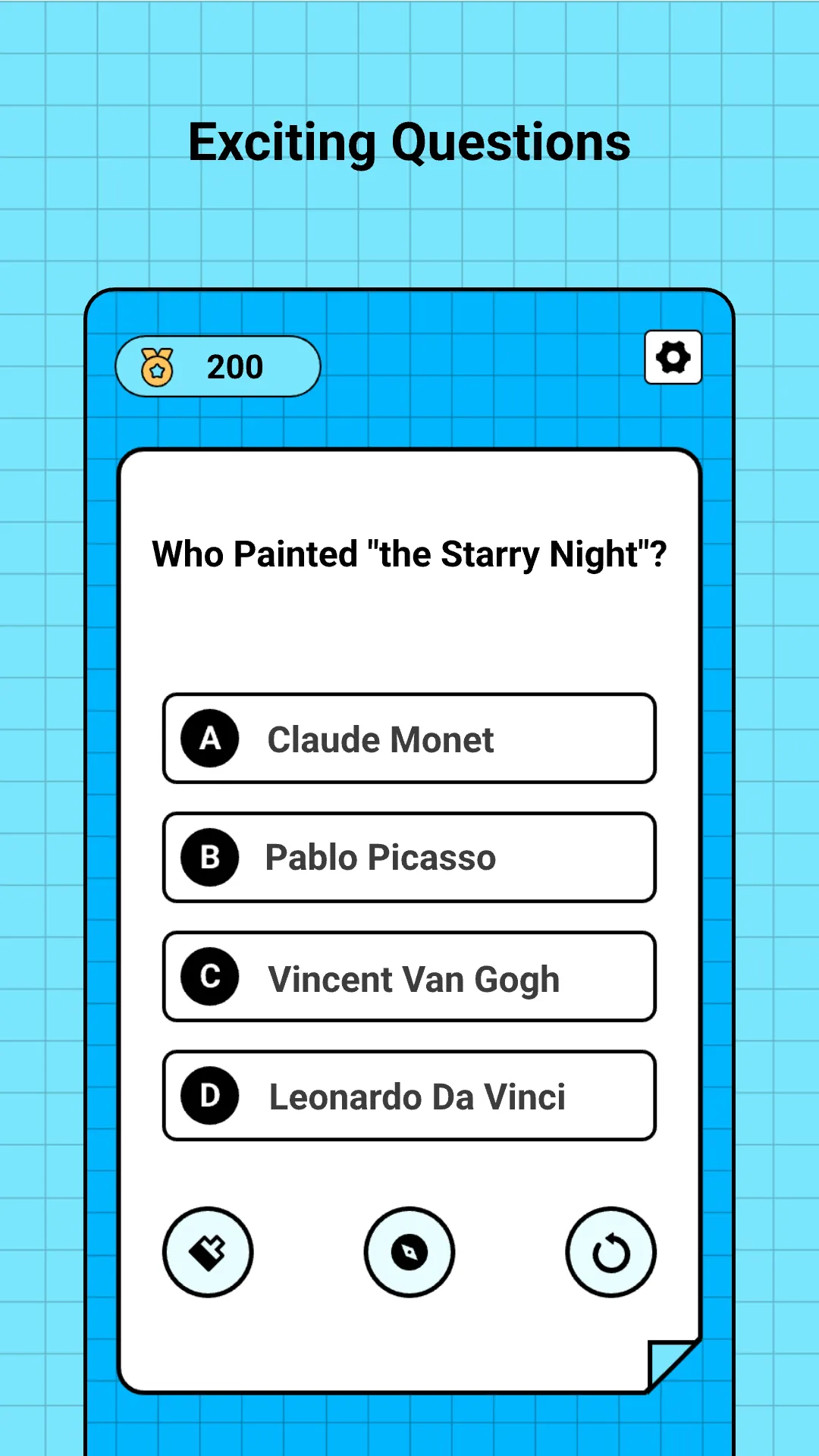Big Quiz Game is a knowledge-based game designed to test and improve your knowledge through fun and challenging quizzes. The gameplay is simple: for each question, choose the correct answer out of four options to advance. Key Features: Experience Points System: Earn experience points (XP) for every correct answer, and lose XP for incorrect answers. Accumulate enough XP to level up your rank. On the home page, you can see your current rank and how much experience points you need to advance to the next rank. Provide Helpful Tools: Erase Tool: Eliminate two incorrect options to improve your chances....
