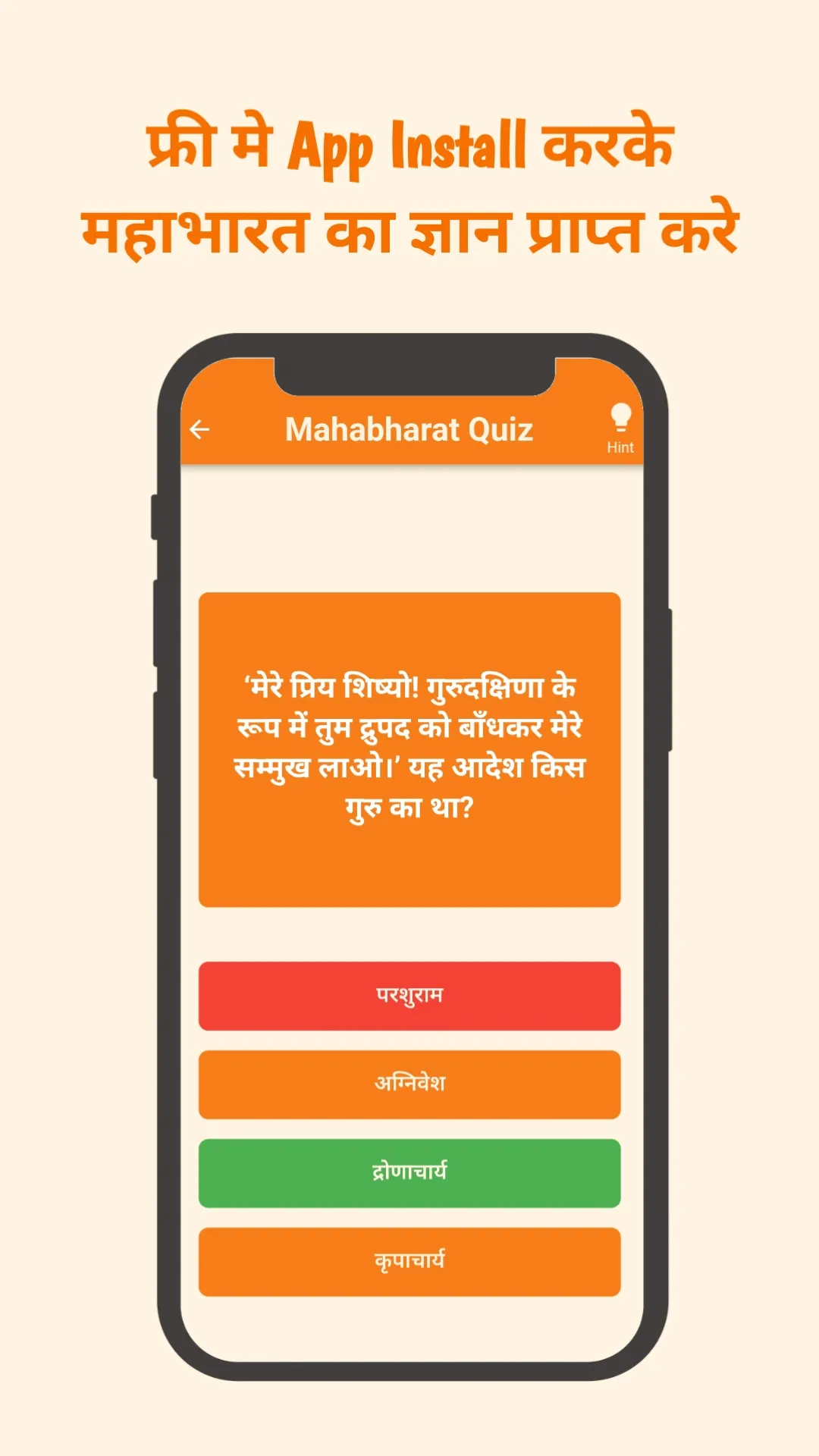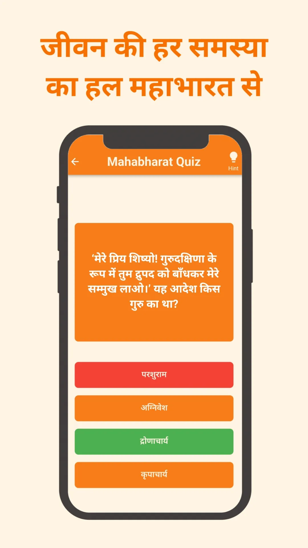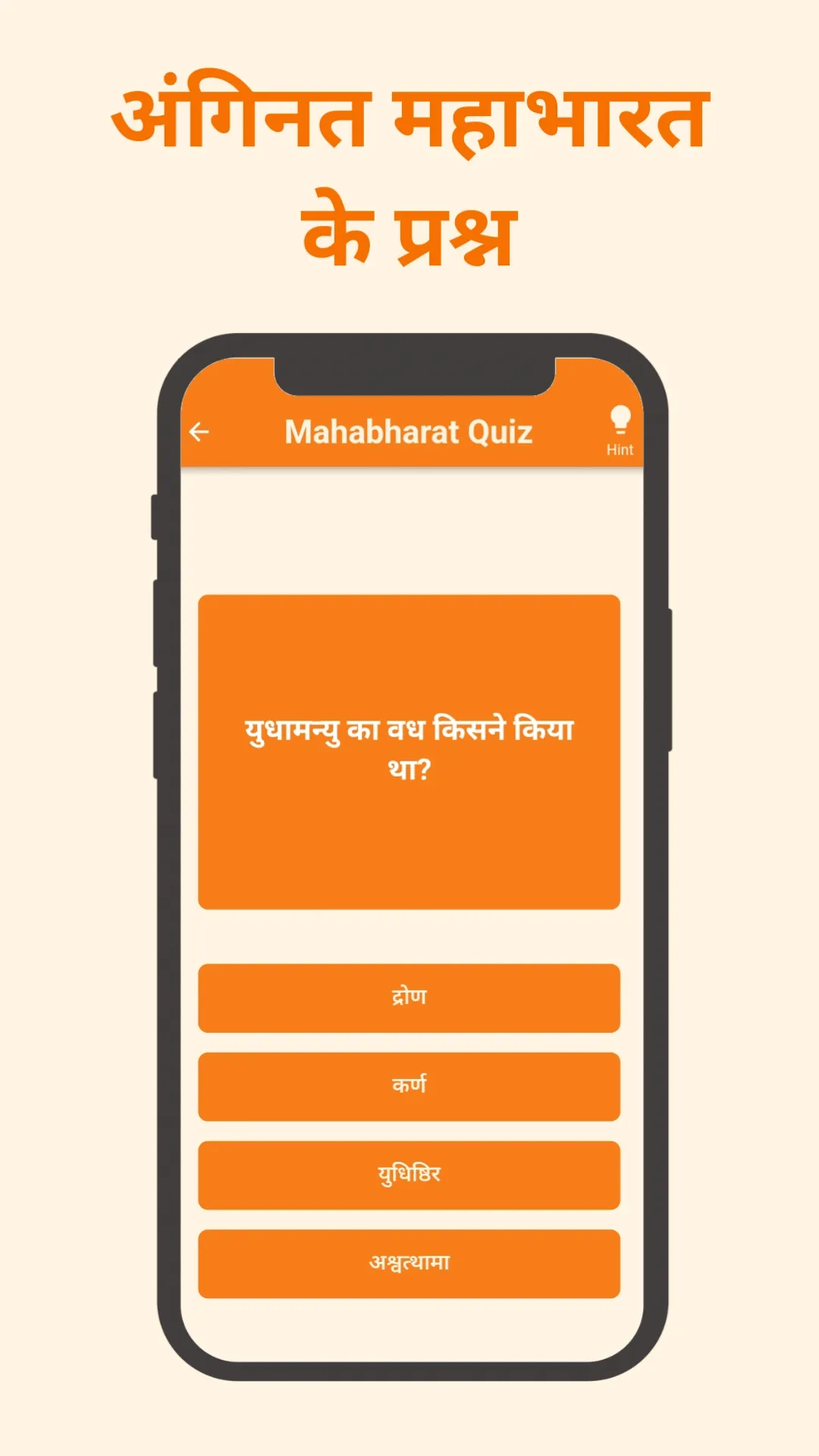 Hare Krishna Let's play the Quiz Game and test your knowledge about the epic Hindu Mythology Book Mahabharat. Challenge yourself with Mahabharat: Hindu Trivia Quiz and test your knowledge of one of the greatest epic tales of India. Improve your understanding of Hindu mythology and culture with this fun and interactive game. ...