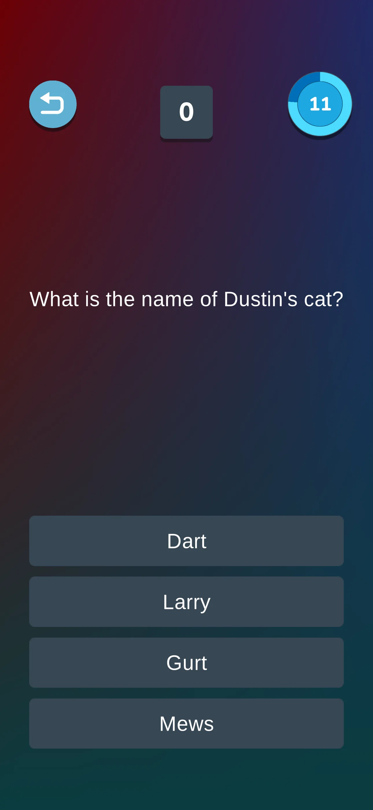 This quiz is designed to test your knowledge of the popular TV series, Stranger Things. Test your knowledge on the iconic show by answering questions on the characters, plot, and more. Whether you're a casual audience or a hardcore fan, this quiz is sure to challenge you. So put your knowledge to the test and see how you stack up against others! Also don't forget to suggest questions! This game is not affiliated in any way with the Stranger Things Series.