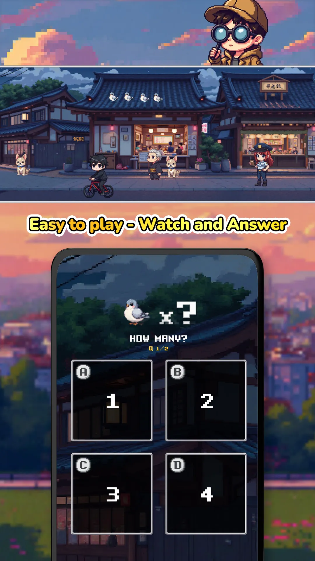 Carefully observe and remember the things that appear in different scenes, identify the hidden objectives, and answer questions related to the scenes to become a top-notch investigator!