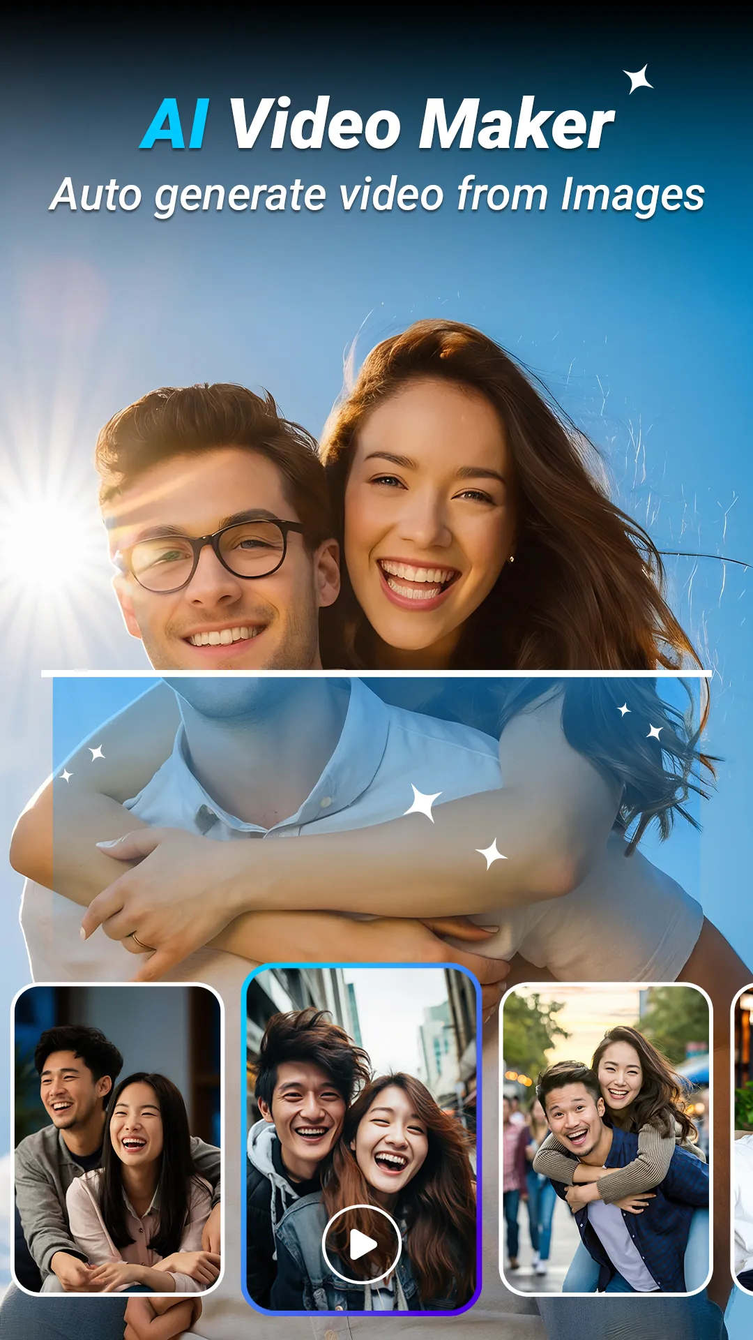 AI Video Maker: Photos & Music turns your pictures into cinematic videos with our powerful AI tech. Make slideshows & Reels Video with music, trendy transitions, and animated text; then export in crisp HD for TikTok, Instagram Reels, YouTube Shorts, and Stories. 💖 With AI Video Maker, you can: ✅ Photo Video Maker with Song: pick photos & songs → auto Slideshow Maker with beat-sync. ✅ Love Video Maker: romantic fonts, heart transitions, and mood-matching music. ✅ Birthday Video Maker: templates, frames, confetti FX, birthday songs & stickers....
