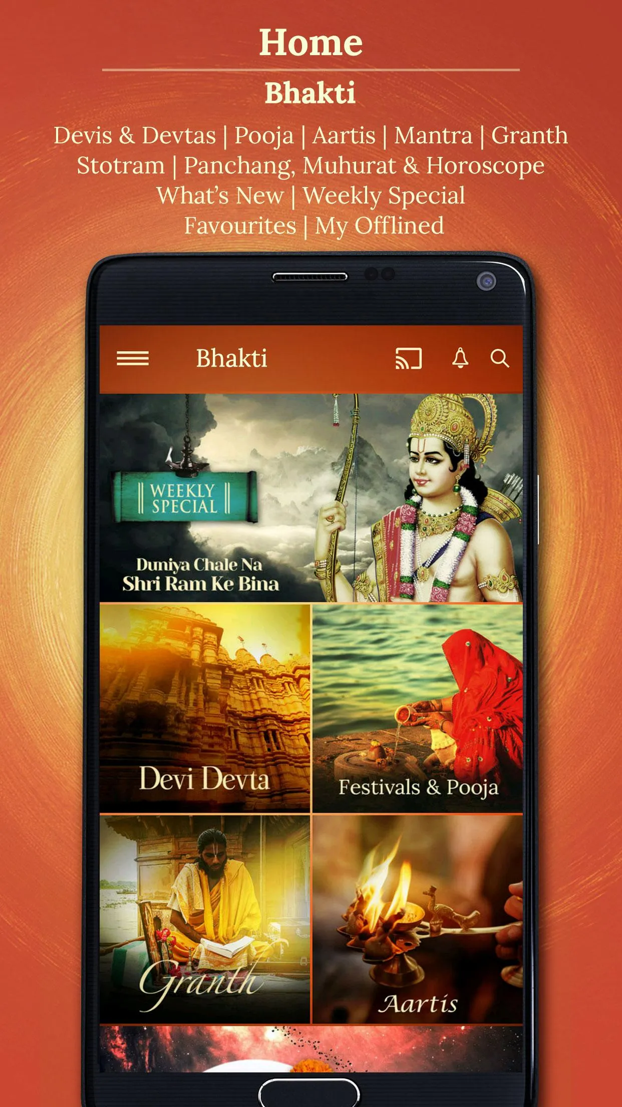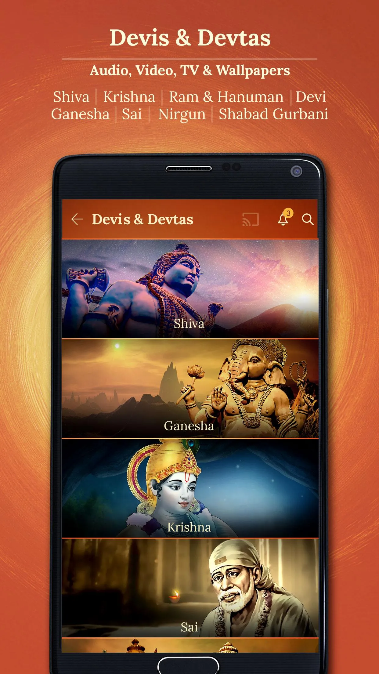 Devotional bhajans & videos of Shiv, Ganesh, Krishna, Ram, Hanuman, Sai Baba, Lakshmi, Saraswati, Shabad Gurbani. Saregama Bhakti is your destination to find peace & inner strength in all the times when you are faced with challenges & difficult situations. It's a one stop for bhajans, granth, aartis, mantras, Stotrams, bhakti geet & videos. This app features: ...