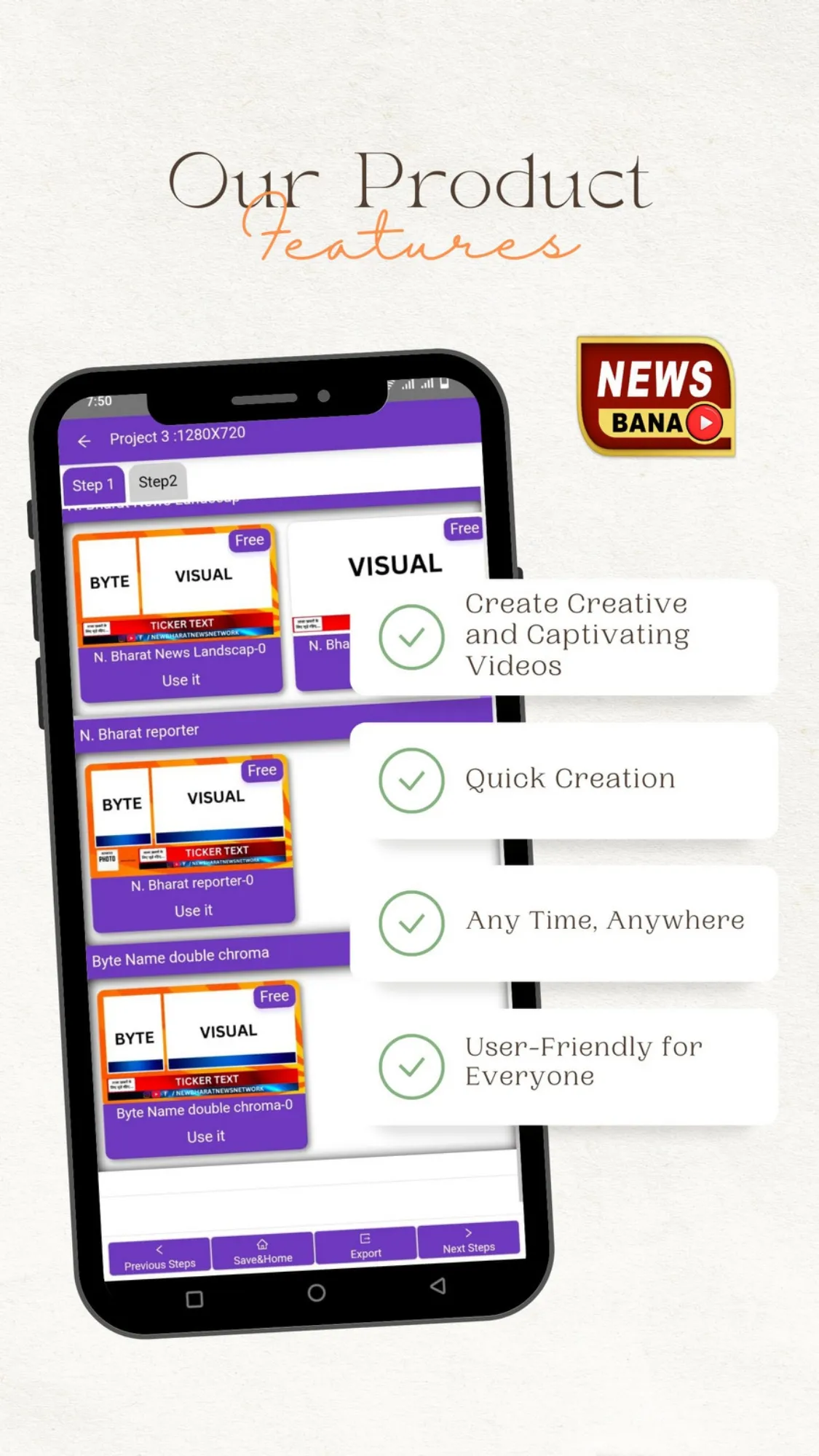 News Banao is designed to simplify the process of creating videos using predefined templates. It streamlines video production by offering users a selection of customizable templates, enabling them to create professional-looking videos in a matter of minutes, without the need for advanced technical skills or extensive video editing knowledge. Key features of your app include: Predefined Templates: The app provides a wide range of templates that cater to different needs, such as promotional videos, social media content, tutorials, and more. Each template comes with placeholders for text, images, and video clips, making it easy for users to plug in their own content and quickly generate a polished video. ...