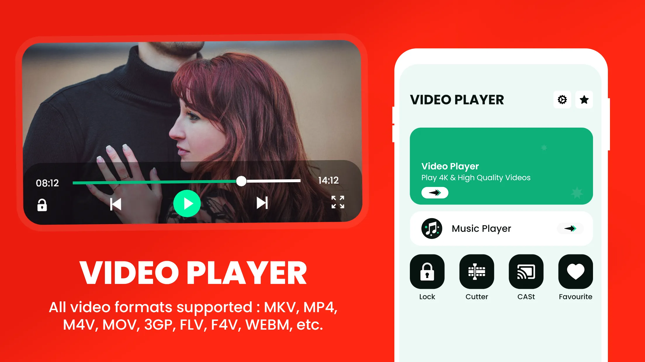 Video Player is a professional video player tool that supports ALL video formats, HD, full HD, 4k videos, MP4, MKV, WMV, TS, 3GP, WEBM, AVI, MOV, etc and plays with high video definition. You can add videos on the favorite list. HD video player helps you full HD playback with Slow motion and fast motion. you can Change video Speed 0.5 to 2.0. Full hardware acceleration supports for faster and smoother HD video play. It is one of the best HD video players for android tablets and android phones. Video Cutter is a very powerful and complete video editor without watermark in edited videos. It is trim part of the video and save it to your phone. ...