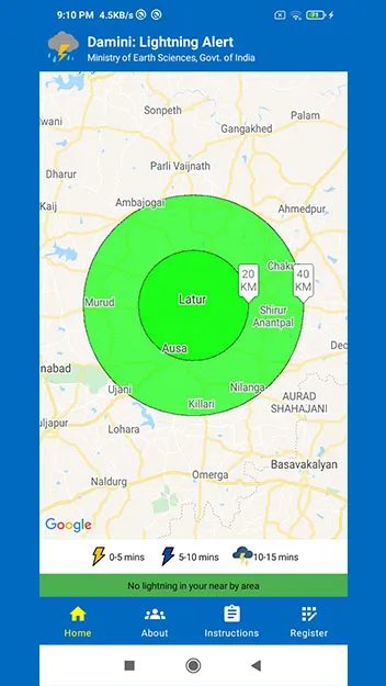 Damini Lightning apps is developed by IITM-Pune and ESSO. The apps is monitoring all lightning activity which are happening in specifically for all india. and alert you if lightning is happening near you by GPS notification. under 20KM and 40KM. Details description of instruction, precautions is provided in apps while in lightning prone area. Does and Don't for in specific situation is strictly followed when lightning happen near you for your safety purpose.