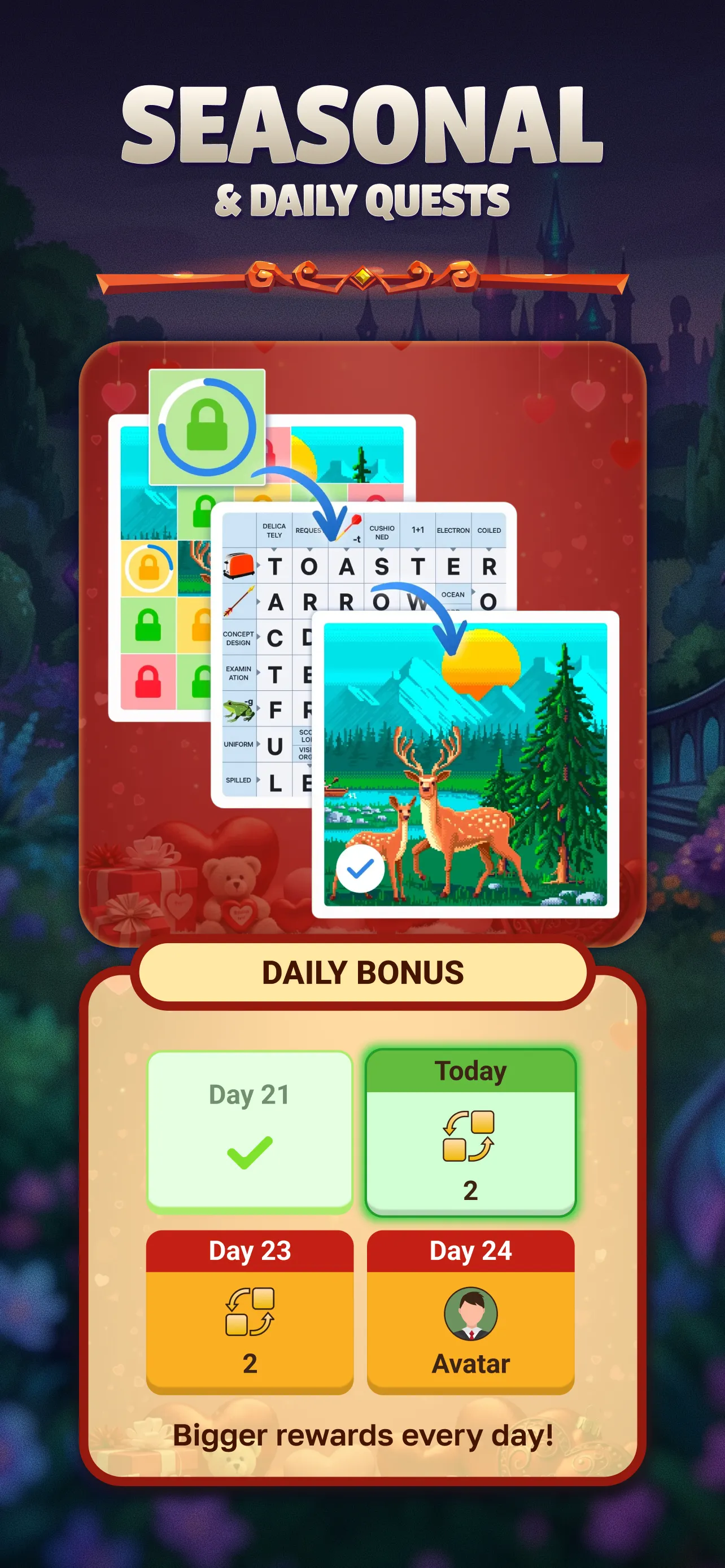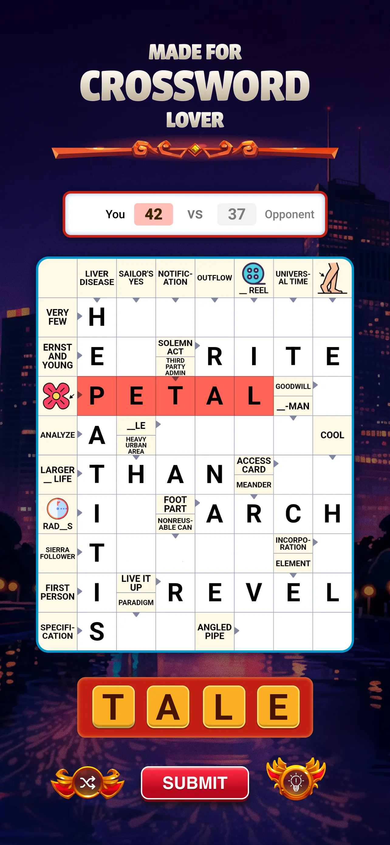 Crossword GO! is a fun and addictive turn-based word game where you and your opponent take turns completing a crossword puzzle while aiming for the highest score. Draw letters from the deck, follow the clues, and enjoy solving crosswords together anytime, anywhere. Inspired by Scandinavian-style crosswords, the clues are placed directly inside the grid, so you can focus on what matters: building words and sharing smart moves. Some clues are pictures, adding extra charm and a light challenge to every puzzle. Designed to be both relaxing and rewarding, Crossword GO! is the perfect brain workout to enjoy at your own pace or side by side with someone special. Improve vocabulary, spelling, logic, and general knowledge while discovering thousands of words. ...