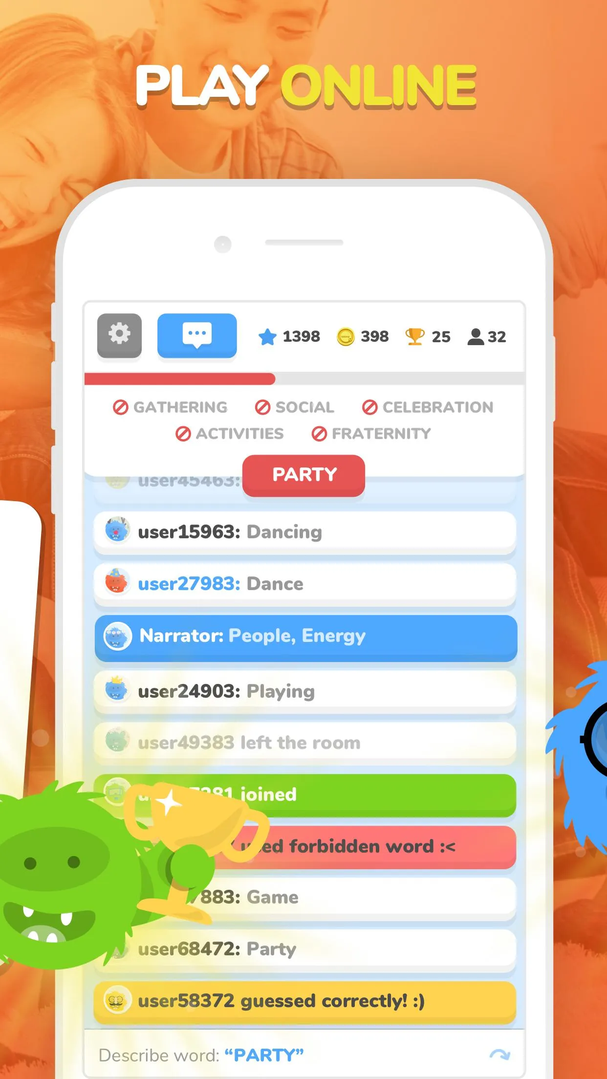 eTABU is a social game where players of two teams guess the keywords presented by their team-mates, who cannot use the forbidden words or gestures. The team who earns a certain amount of points first, wins. The ONLINE mode lets you to compete with players all over the world! If you have played the classic board game, eTABU will be familiar to you. Pass the keyword without using forbidden words! eTABU is the best party game ever. Cards available in English, German, Polish, Turkish, Spanish, French, Italian, Portuguese, Greek, Russian, Arabic. ...