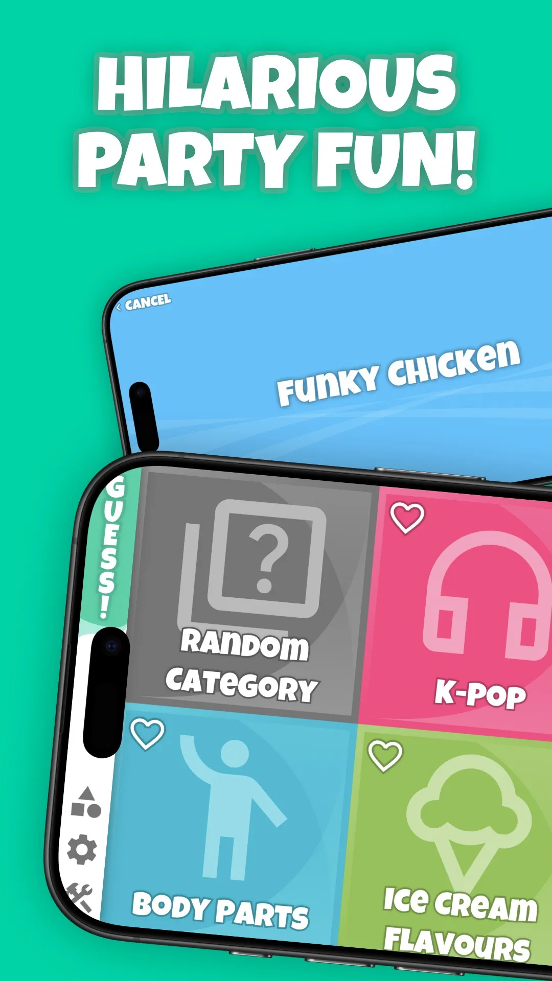 🎉 Get the Party Started with Guess! 🎉 Looking for a hilarious and fun addition to your next party or game night? Guess! is the best charades game for endless laughter and fun with friends and family! Put your acting, singing, dancing and trivia skills to the test as you try to guess the word on your forehead before time runs out; it's party fun at its very best! • Easy to Play! Enjoy heads up, headband-style charades game play! Simply hold your phone or tablet to your forehead, let your friends shout, dance and act out clues, and tilt the screen to confirm or pass! • Endless Entertainment! Hundreds of decks included covering everything from movies and celebrities to animals, dance moves and more! You'll never run out of fun challenges to test your acting skills and trivia knowledge!...